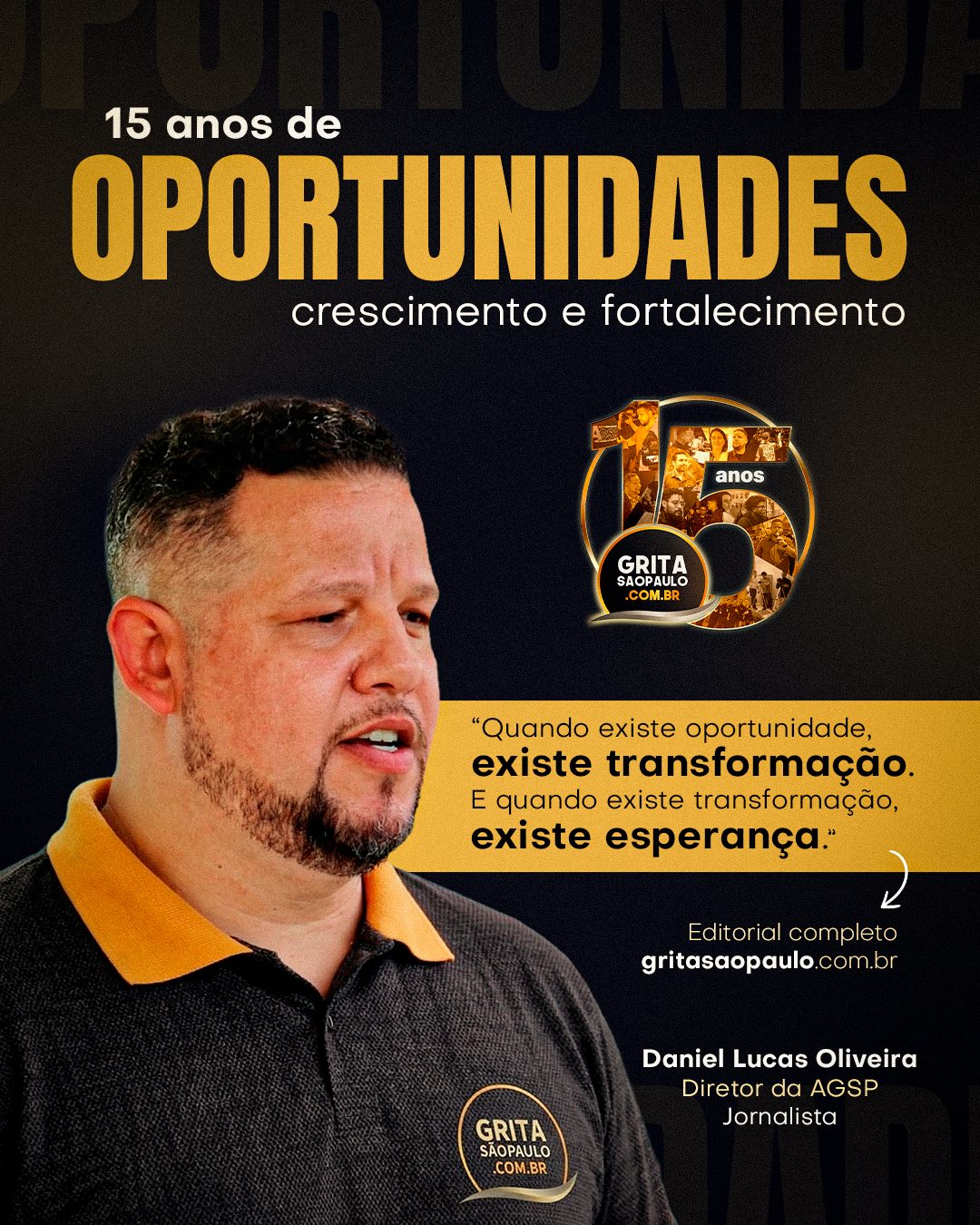 No dia 1º de junho de 2026, a Grita São Paulo completará 15 anos de história. Uma trajetória construída com muito trabalho, fé, desafios, aprendizados e, acima de tudo, oportunidades.