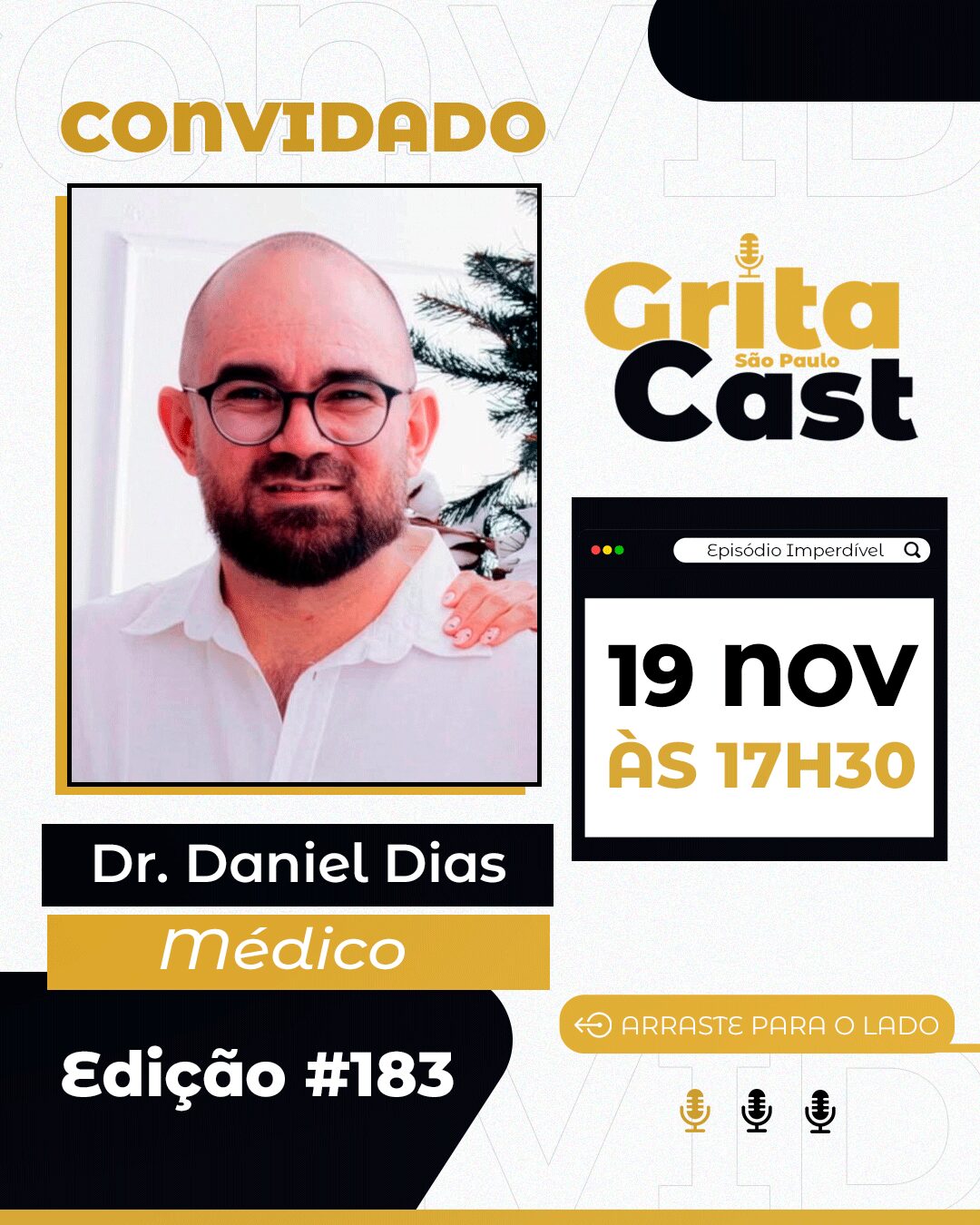 A edição #183 do GritaCast vai ao ar na próxima quarta, dia 19 de novembro, e recebe o Dr. Daniel Dias Vieira Soares, médico com especialização em Ultrassonografia Geral e mais de 12 anos de experiência em diagnóstico por imagem. Com uma trajetória marcada pela dedicação à saúde preventiva, ele vai compartilhar sua visão sobre os cuidados essenciais com a saúde masculina, especialmente no contexto do Novembro Azul.