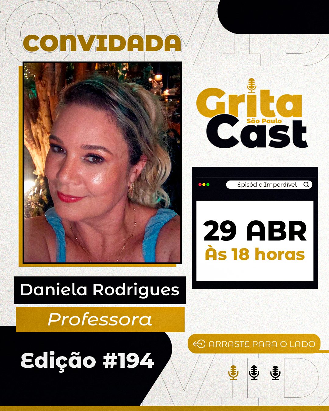 Professora Daniela Rodrigues é a próxima entrevistada do GritaCast #194. Nesta quarta, dia 29 de abril