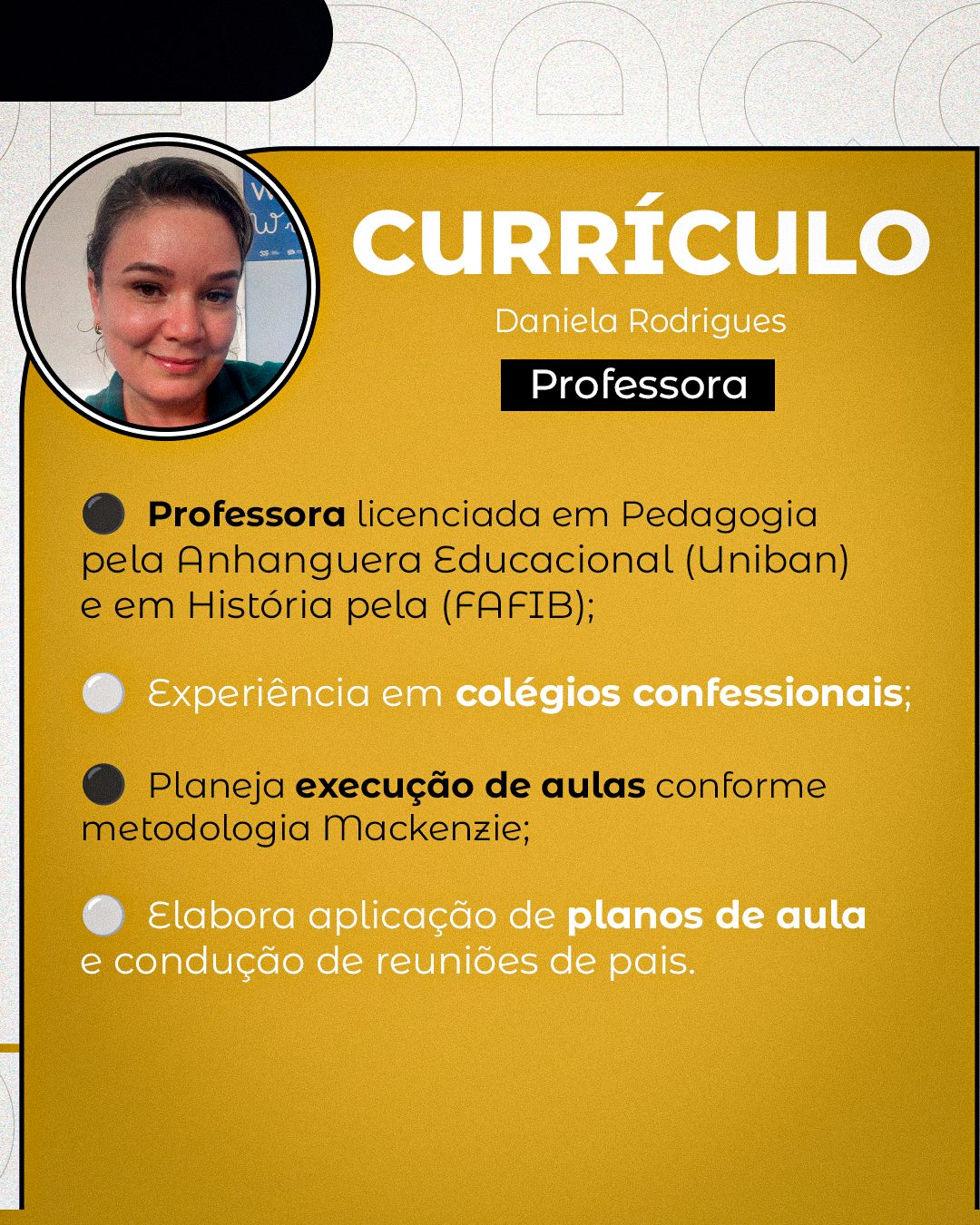 Trabalhou em diversas escolas, fez Licenciatura em Pedagogia e História, além de diversos cursos profissionalizantes. É um perfil de profissional que faz a diferença! Para conhecer melhor a Professora Daniela, assista o GritaCast nesta quarta, dia 29 de abril.