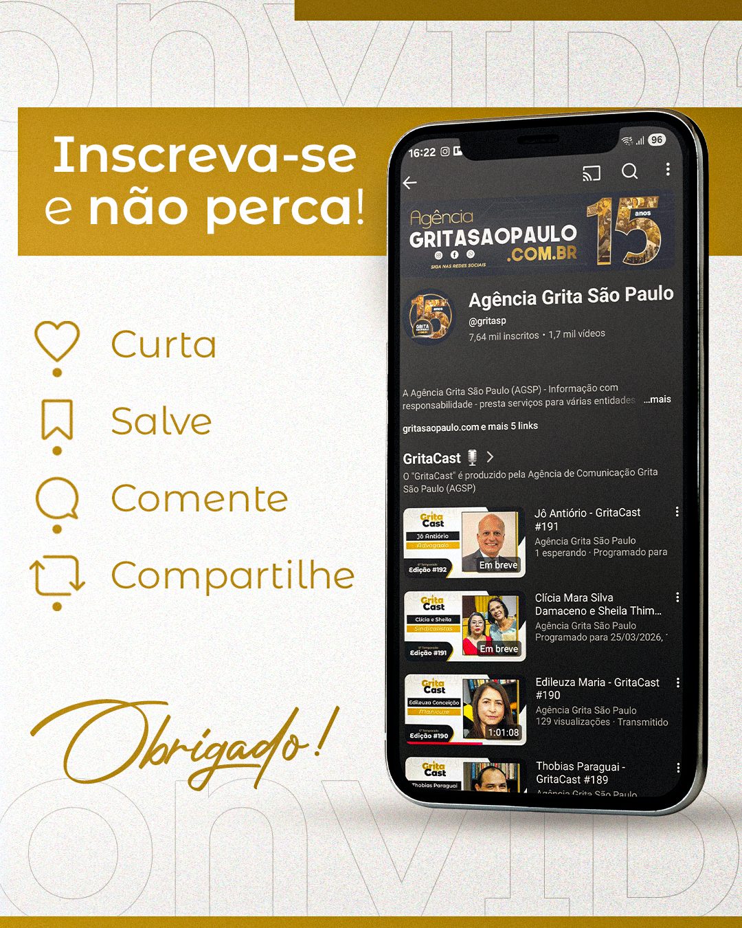 Não perca a edição nº194 do GritaCast. Nesta quarta, receberemos a Professora Daniela Rodrigues, que tem um amplo currículo na área da Licenciatura. Uma profissional que tem muito a dizer sobre o âmbito educacional. Ela, como Professora Polivalente, é um exemplo de profissional com inúmeras habilidades e contará um pouco sobre sua experiência no nosso Podcast.